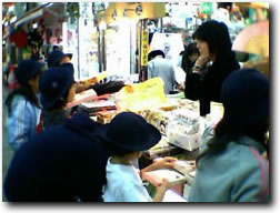 新京極でお買い物。「京都のみやげは,やっぱりおたべかなぁ。」「いやいや,京つけものちがう?」なんて声が聞こえてきそうですね。 |