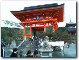 清水寺の仁王門です。昔ながらの丹塗りで「赤門」と呼ばれています。平成15年に解体修理が行なわれた,重要文化財です。 |