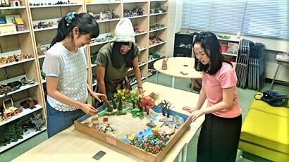 この写真は、箱庭療法にチャレンジした際の写真です。生徒指導実践開発コースでは、カウンセリングや心理学についても学ぶことがあり、自分たちでも箱庭療法を体験する機会があります。私の箱庭からは、「癒しを求めている」ということがわかるそうです。