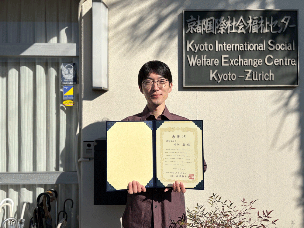 10月19日(日)、本学大学院博士課程学校教育実践学専攻令和3年度修了生の田中駿さんが、日本LD学会第34回大会において研究奨励賞を受賞しました。